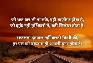 इस शायरी में जीवन में हार ना मानने की प्रेरणा दी गई है। जो लगातार अपने लक्ष्य के लिए प्रयास करता है, वही सफलता का हकदार होता है।